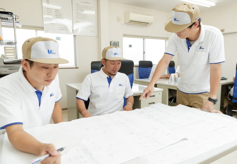 若さと経験を兼ね備えたエムプラスのスタッフたち。若いからこそのパワーとスピード感、自由な発想で様々なことに積極的にトライ。チーム一丸となって技術や知識の向上に取り組み常に高い技術力を維持しています。